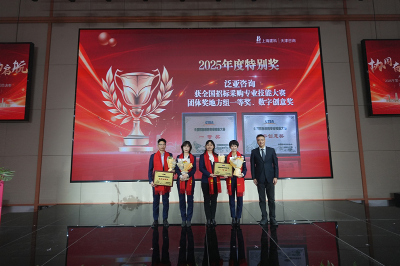 會上,公司對2025年度涌現出的優秀個人與集體進行了表彰。他們中既有在專業領域深耕細作的咨詢師、工程師、招標師、造價師,也有在管理、職能、項目一線擔當作為的業務骨干;既有閃耀著個人光芒的“最美奮斗者”,也有凝聚團隊力量的優秀集體與優勝單位。會上還特別嘉獎了在全國招標采購專業技能大賽中斬獲一等獎的泛亞咨詢“津采飛揚”代表隊,他們以卓越表現為公司贏得崇高榮譽,展現了天咨人的專業實力與拼搏精神。