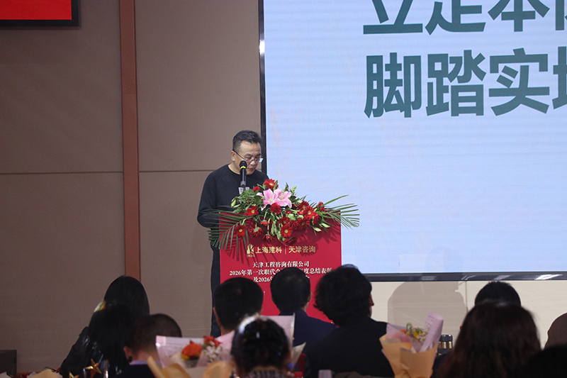 公司黨委副書記、總經理朱震作2025年度工作報告,動員部署2026年重點工作任務。2025年,天津咨詢在上海建科咨詢集團、天津國興資本雙方股東的堅強領導與支持下,新班子強化黨建引領,錨定全年目標,緊緊圍繞“融合發展”工作主基調,全力推進“二穩六進三破局”措施落實,團結帶領廣大干部職工凝心聚力、踔厲奮發,完成主要績效考核目標,發展基礎更加穩固,創新機制日趨完善,運行質量穩步提升,為“十五五”高質量發展奠定堅實基礎。2026年,將重點抓好“五個聚焦、五個強化”重點任務,全力推動“十五五”發展規劃實施,努力實現2026年各項工作目標任務,進一步解放思想、開拓進取,協同奮進,聚力啟航,全力以赴開啟“十五五”高質量發展新篇章。