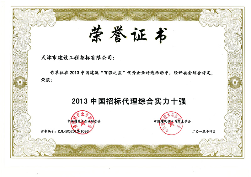 招標(biāo)代理綜合實(shí)力十強(qiáng)2013