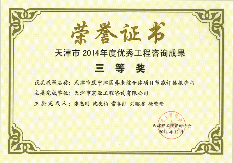 優秀咨詢成果三等獎(2014)