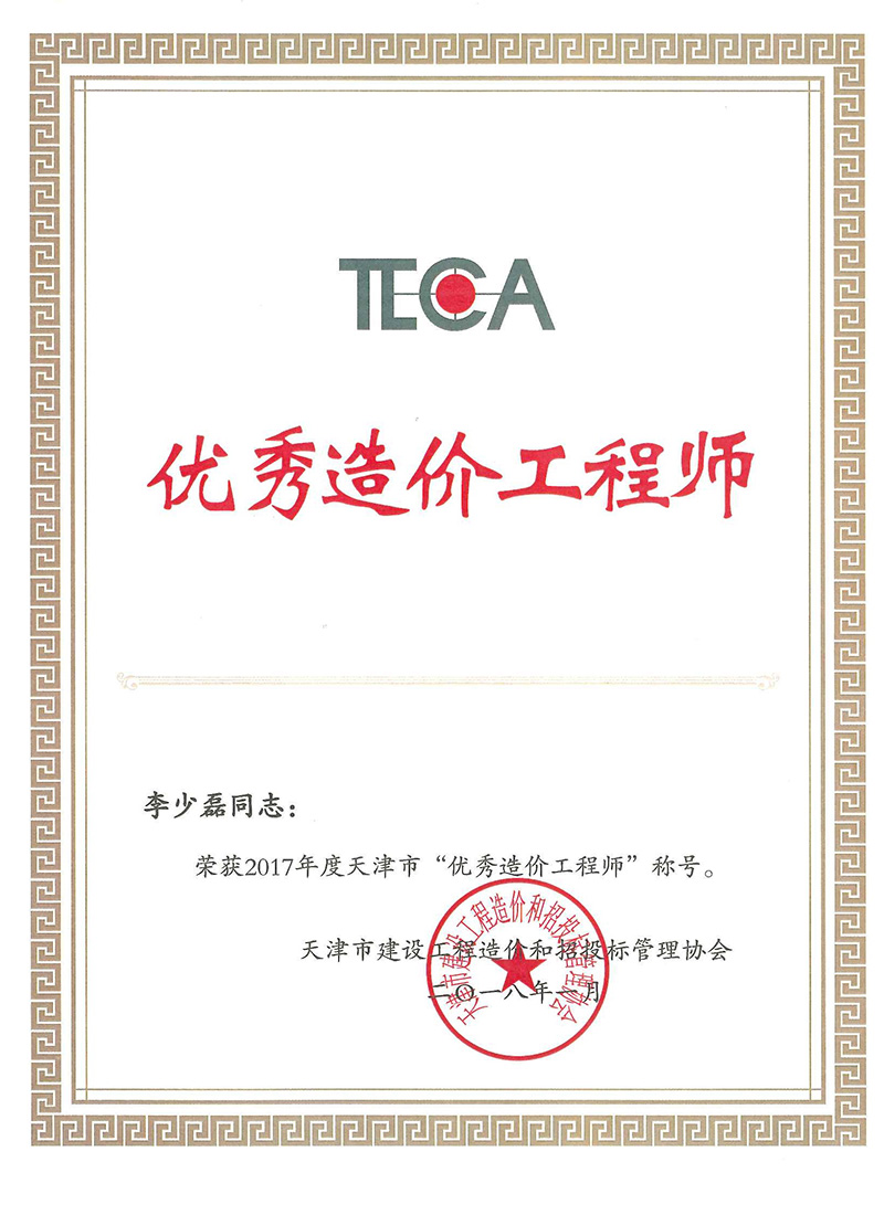2017年度優秀造價師李少磊