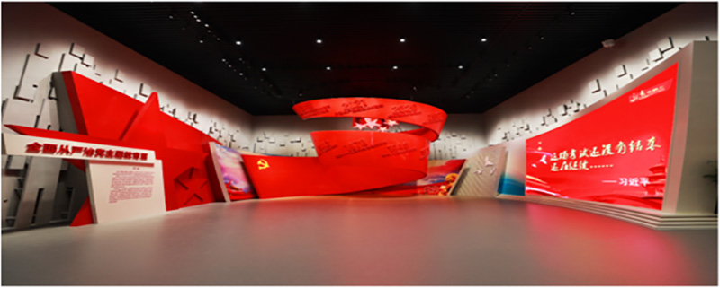 該館展陳面積達到7000余平方米,是迄今為止全國最大的全面從嚴治黨主題教育展館,上下共三層,由序廳、政治立魂篇、嚴管立威篇、紀法立行篇、警示立戒篇、黨性立心篇、文化立信篇、尾廳和互動區等9個部分組成。該項目得到了中央紀委領導和市委、市紀委主要領導的充分肯定。